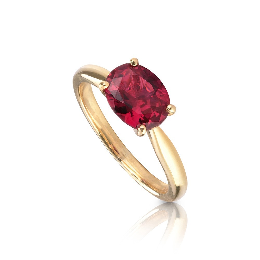 Δαχτυλίδι μονόπετρο από χρυσό διακοσμημένο με ruby zircon. Κατασκευάζεται σε 14Κ, 9Κ, 18Κ και σε ασήμι 925. Εργασία χειρός με λουστρέ φινίρισμα.